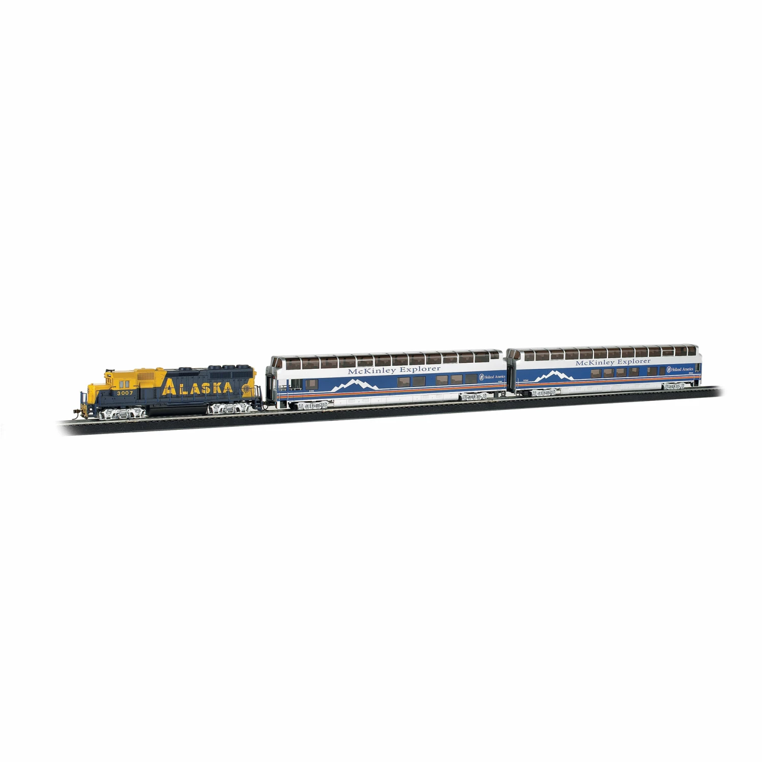 Treating passengers to breathtaking views of the Alaskan wilderness in special vista-dome cars is the McKinley Explorer. The modern version of the McKinley Explorer features models of bi-level dome dining-lounge cars. At 18 feet 2 inches tall and 89 feet long, these cars manufactured by the Colorado Railcar Company are the largest dome cars ever built.