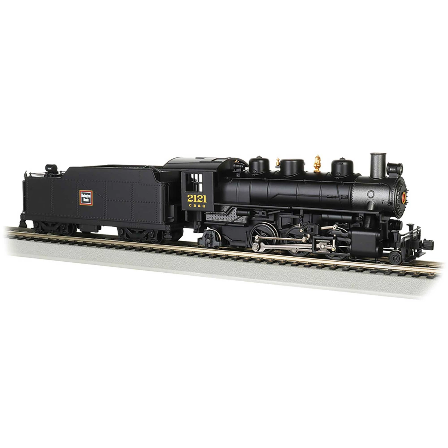 PRAIRIE 2-6-2 Locomotive w/SMOKE & TENDER – C B & Q Burlington #2121 – HO Scale. In the early 1900’s the 2-6-2 Locomotives were built to be used on the mid-western prairies. In all 1500 2-6-2 were built with many of them used in short lines. The Bachmann 2-6-2 models feature Locomotive & Tender with Smoke and Operating Headlight, Highly Detailed Locomotive and Tender Bodies, Metal Wheels and Siderods, and operating E-Z Mate Couplers. This model preforms best on 18″ radius curves or greater.