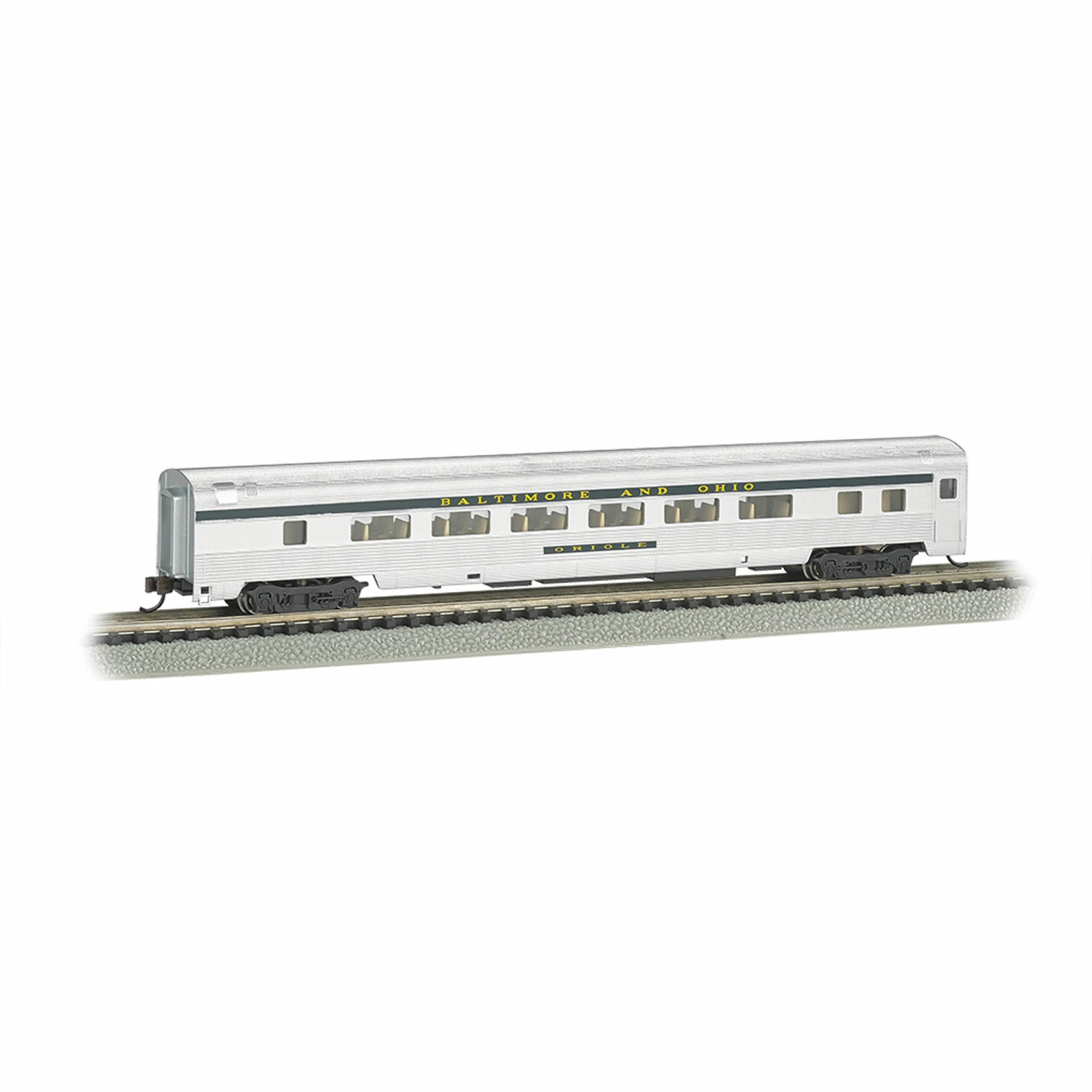Bachmann Industries N 85′ Fluted Streamline Coach with Lighting, B&O for Passenger Cars