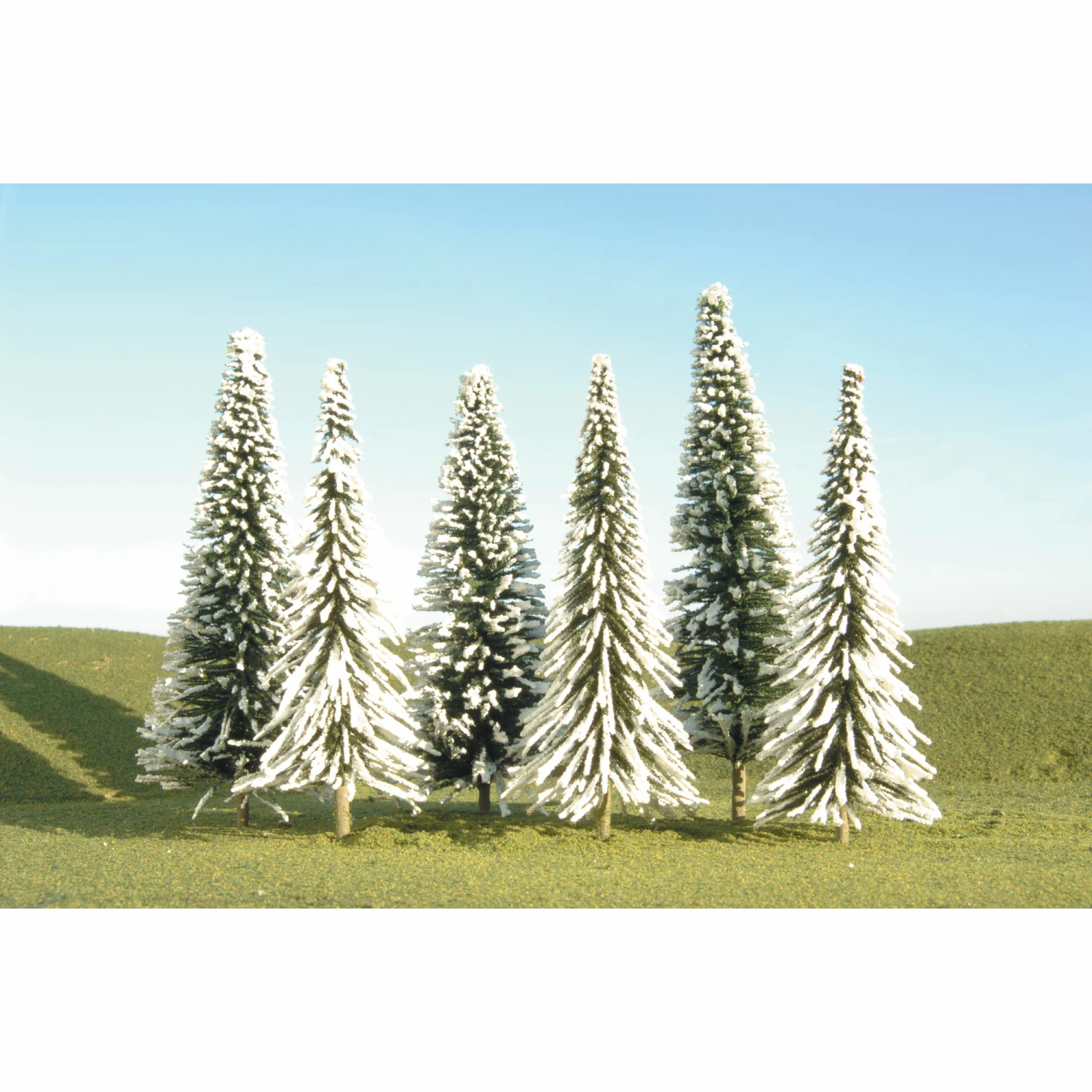 Bachmann Industries Scenescapes Pine Trees with Snow, 3-4″ (9) for Scenery